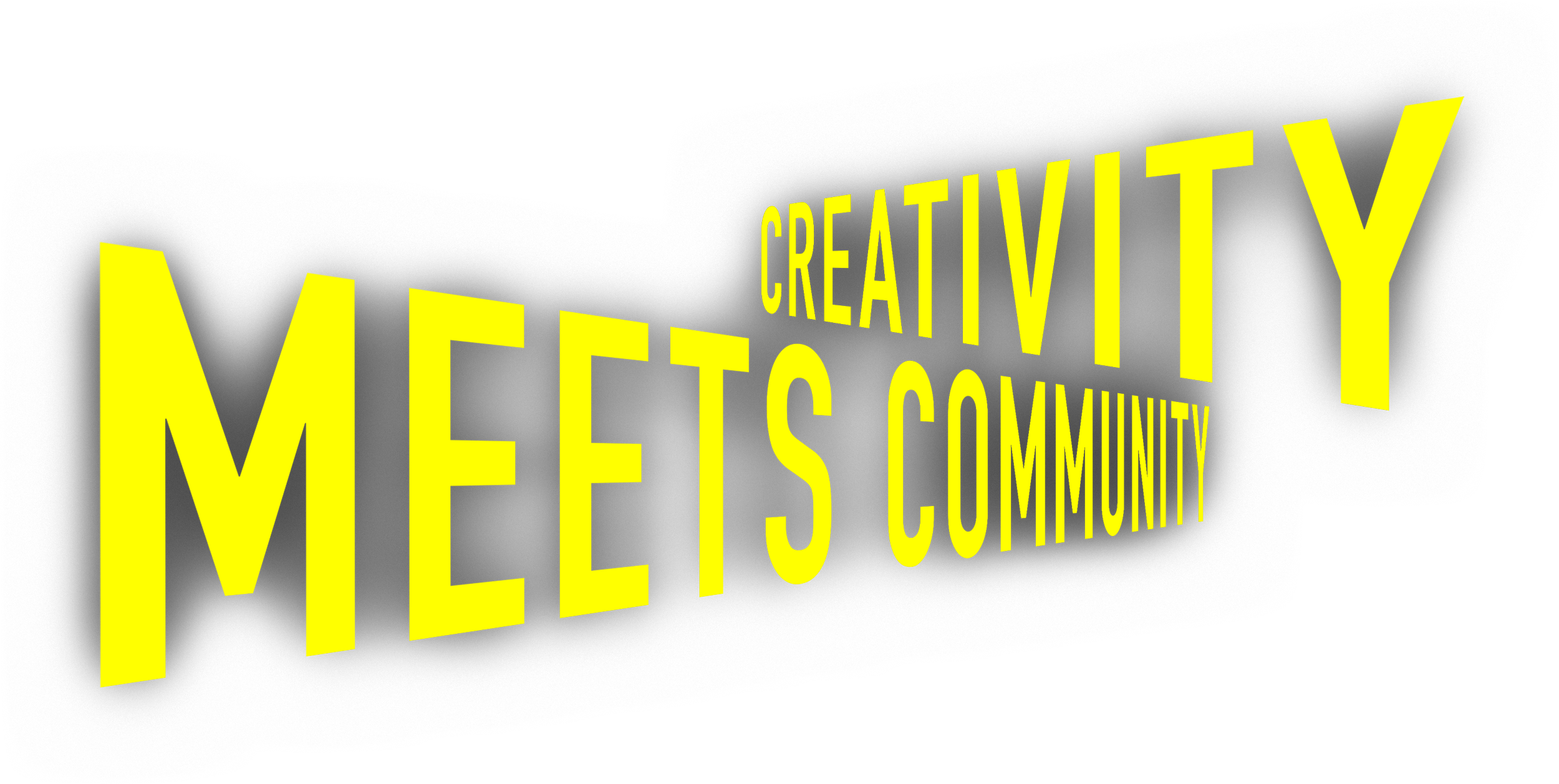 3D yellow text on black background reading 'MEETS CREATIVITY, COMMUNITY'.